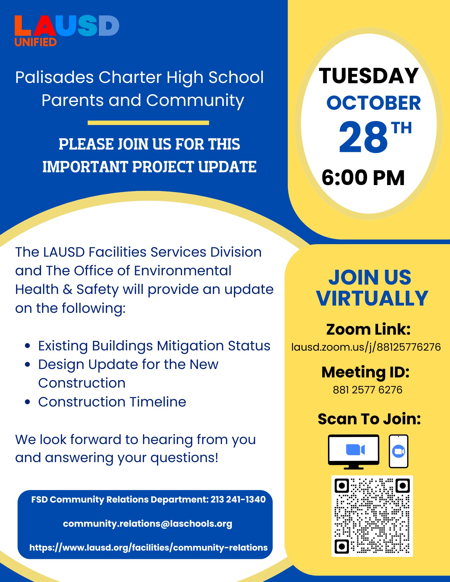 - 10/28/2025 - Palisades Charter High School Project Update Parent and Community Meeting