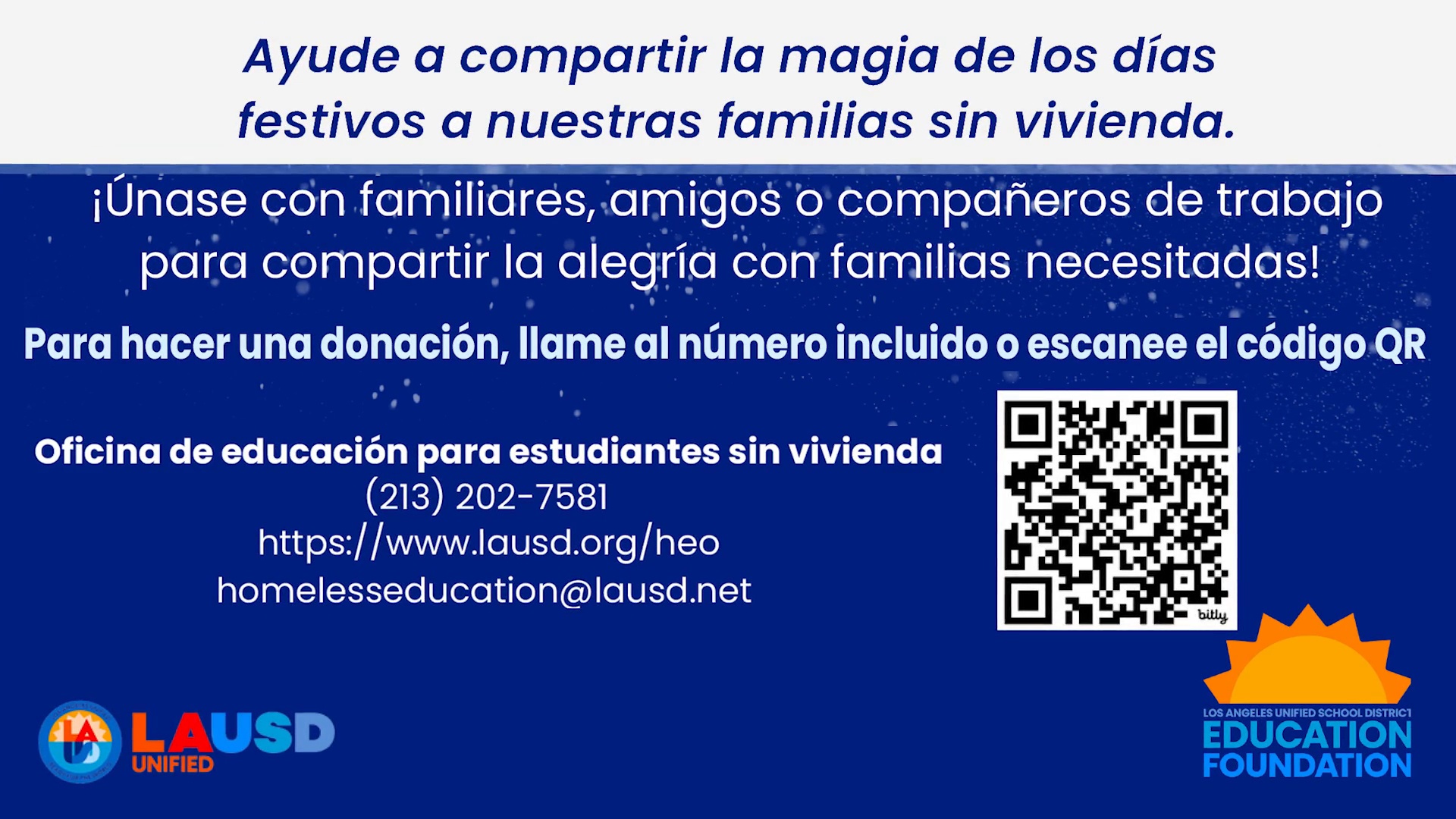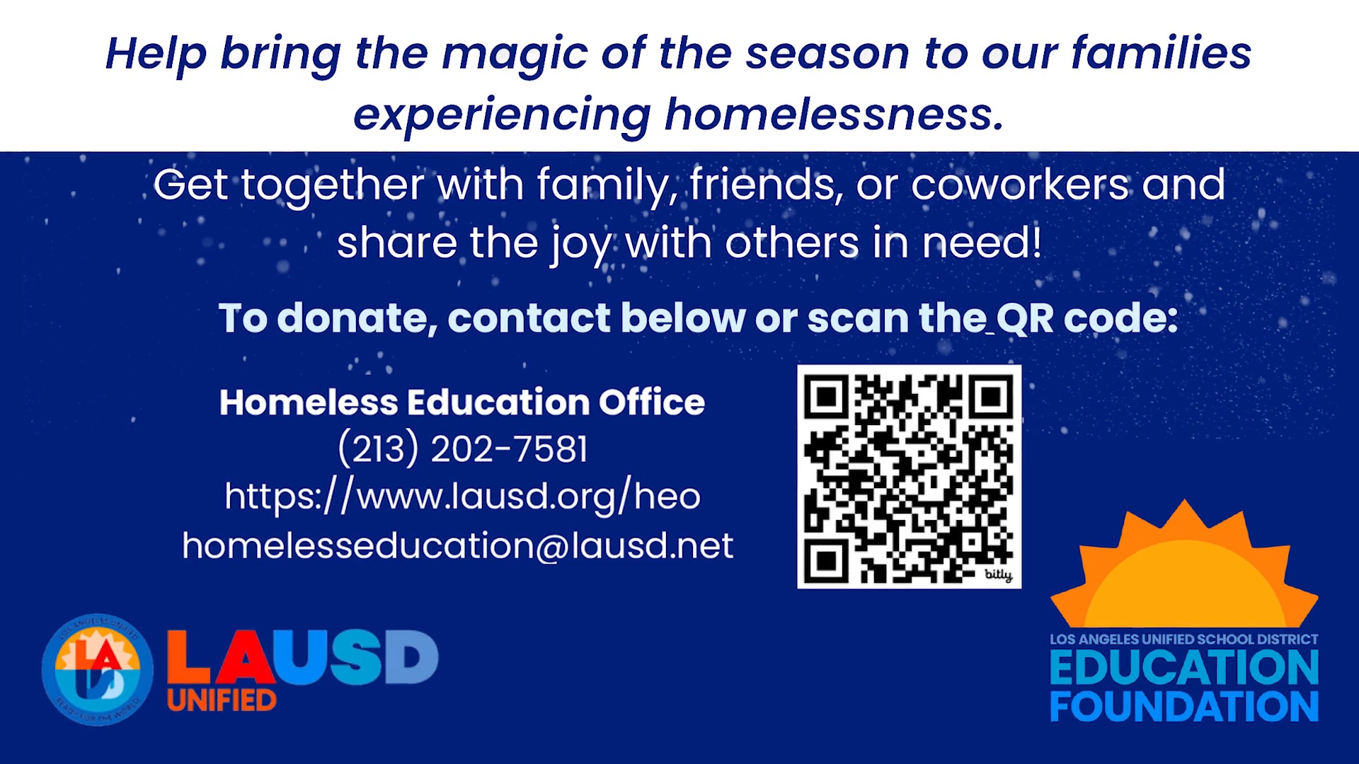 The LAUSD HEO is staffed by a Coordinator, District Support PSA Counselor, six Title I Homeless PSA Counselors, ten PSA Aides, three Counselor Aides, a Senior Parent Community Facilitator, and a Senior Office Technician. The HEO works to serve the identified students and families that are experiencing homelessness within our District boundaries.